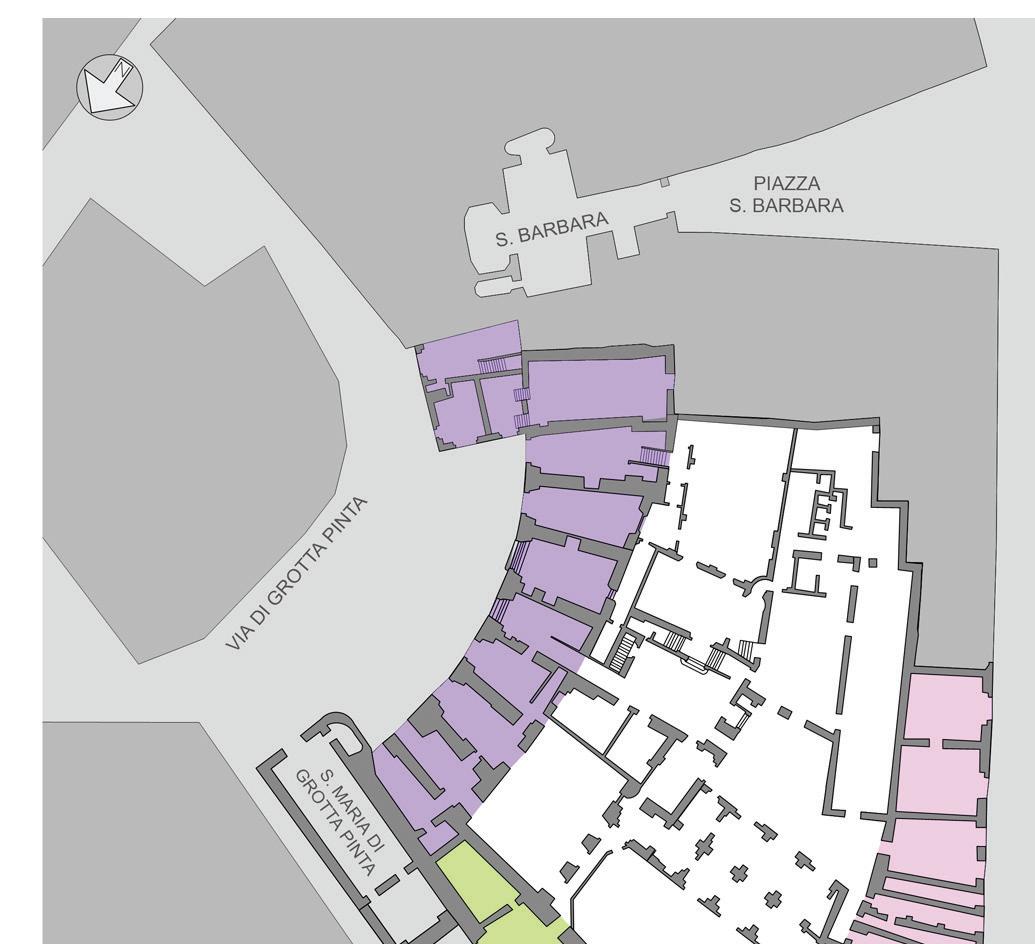 The easiest way to understand the complicated structure of Palazzo Orsini is to start by peeling away the most recent accretions. In the Catasto Urbano of 1819 the palace, numbered 325, occupies the south side of the ancient theater site, and includes most but not all of the block bounded by Via di Grotta Pinta, Piazza del Biscione, Campo de’ Fiori, Via dei Giubbonari and Piazza S. Barbara (Pl. 34). If we compare the Catasto to a current plan and aerial photograph, it is clear that most of the structures that clutter the area within the precinct of the palace are very recent additions (Pl. 32 and 35).8 Only in the twentieth century was the large courtyard divided by a new wing, the garden almost completely built over, and the forecourt on Campo de’ Fiori filled in with the onestory structure we see today.