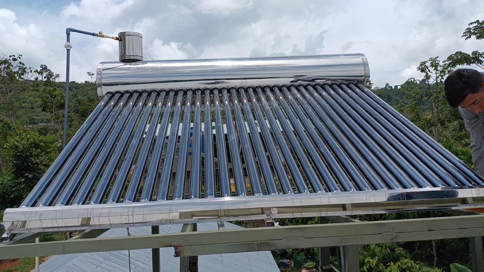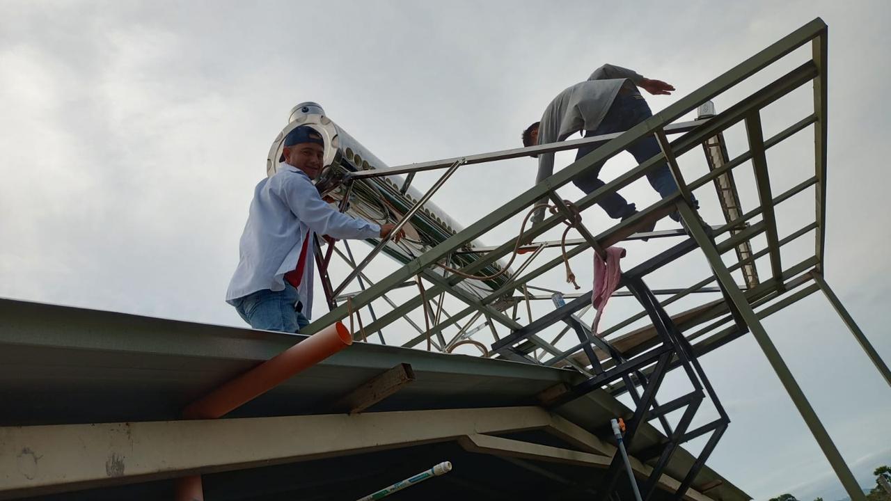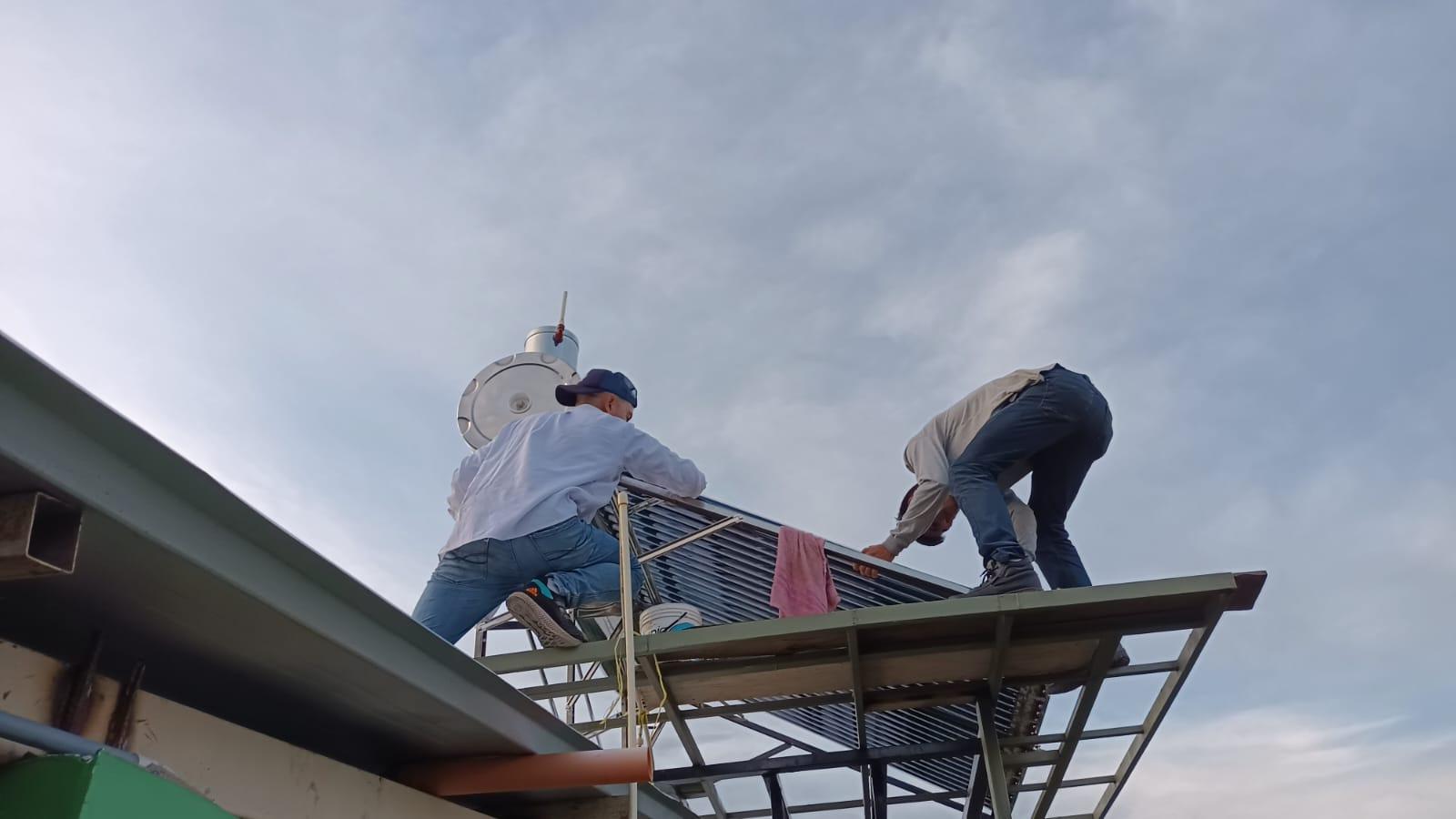 Debe contener un tanque baja presión, un termo tanque, los conectores solares y la estructura metálica de la base