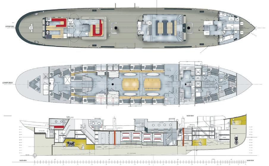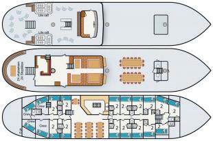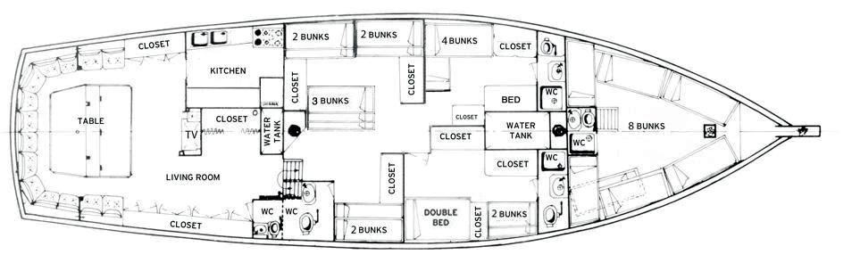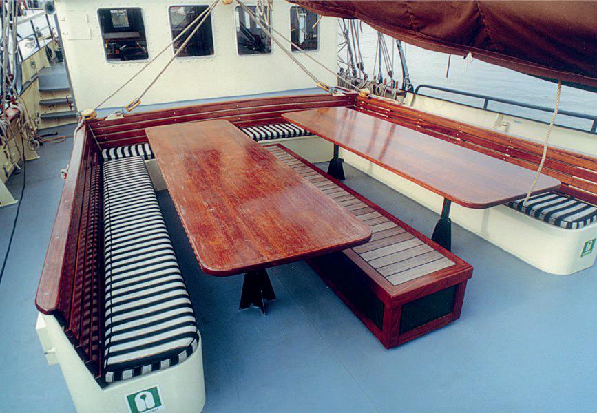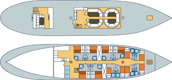 Le pont Pont avant abrité Pont du milieu avec chaises et tables Pont arrière abrité avec une belle vue et de nombreux sièges.
