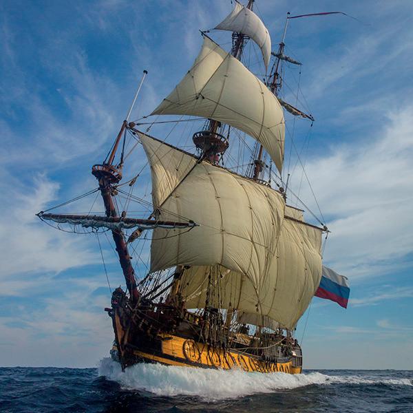 Le Shtandart est la réplique d’une frégate Russe du XVIIIe siècle lancée en 1999 après 5 ans de chantier par le Centre d’éducation maritime de SaintPétersbourg. Le navire fut construit dans le cadre du «Shtandart project», un projet soutenu par les gouvernements qui consistait à former les jeunes russes à la construction navale en bois. La frégate originelle russe était le navire amiral du Tsar Pierre Le Grand et le premier navire de la nouvelle flotte russe. Il sera engagé dans de nombreuses batailles et deviendra rapidement le symbole de la Marine de Russie.