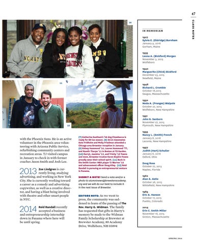 SUBMIT A NOTE! Send a note and/or a photo to alumninews@brewsteracademy. org and we will do our best to include it in the next issue of Brewster. EDITORS NOTE: As we went to