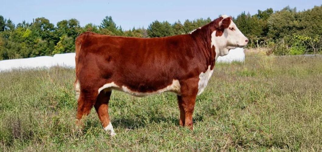 This Mandate daughter is the kind that stops you in your tracks – super fancy, feminine, and fine boned with the style to stand out in the show ring. Backed by generations of proven maternal power, her great grand dam raised the 2019 RAWF Grand Champion Hereford bull and anchored one of our most productive cow families.