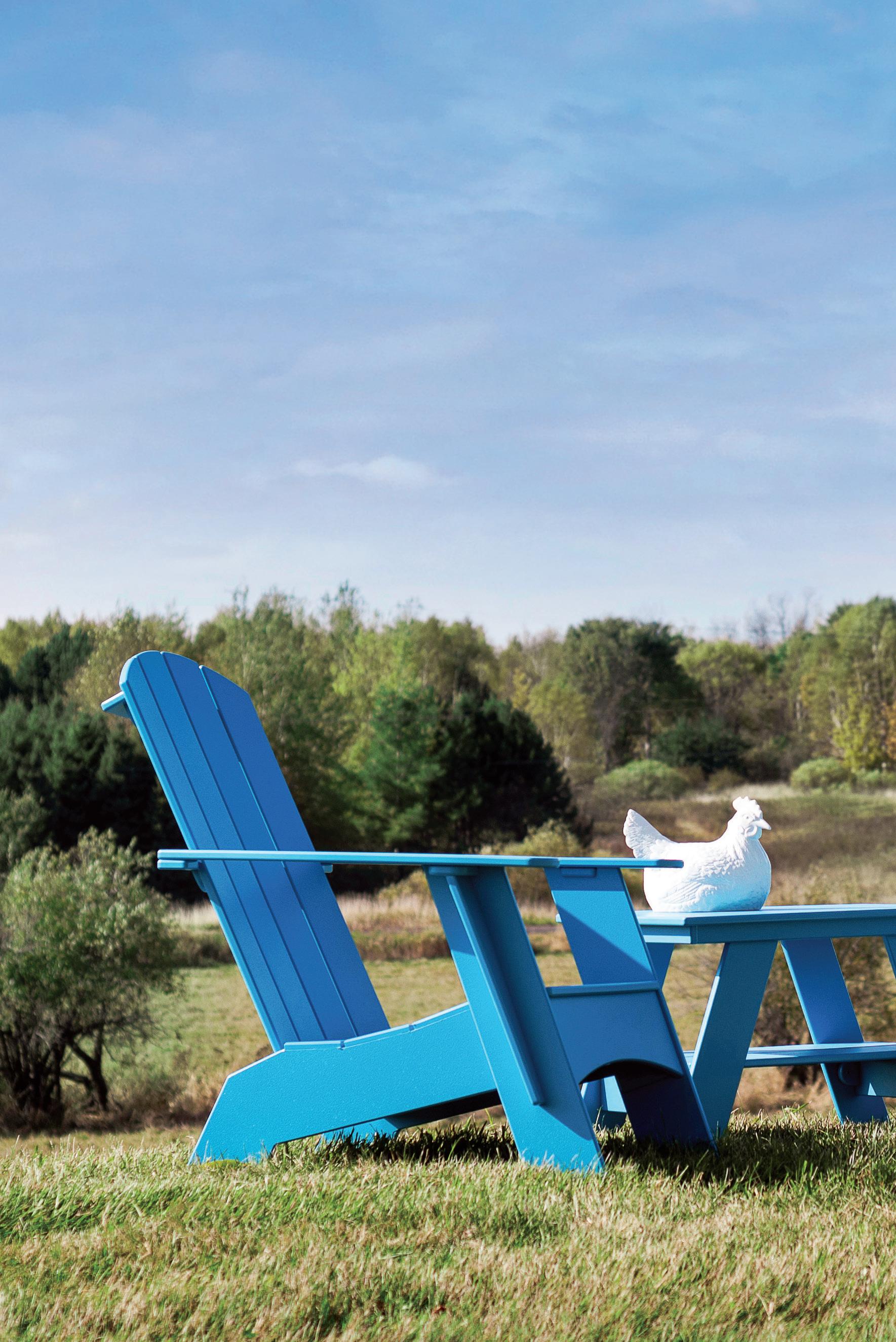 Made in Duluth, Minnesota, partially with recycled post-consumer plastic, Loll’s modern outdoor furniture adds a unique and modern aesthetic to outdoor spaces. Founded on principles of efficient and responsible use/ reuse of manufacturing materials, Loll was conceived as a way to repurpose excess skate ramp material from our former company, municipal skatepark creator, TrueRide. Loll began by creating a modern Adirondack chair with the durable skate-proof material that was proven to require no maintenance and hold up in all weather conditions. Appreciate the outdoors with maintenance-free furniture made by Loll Designs. Learn more about Loll’s sustainability efforts at lolldesigns.com/sustainability.