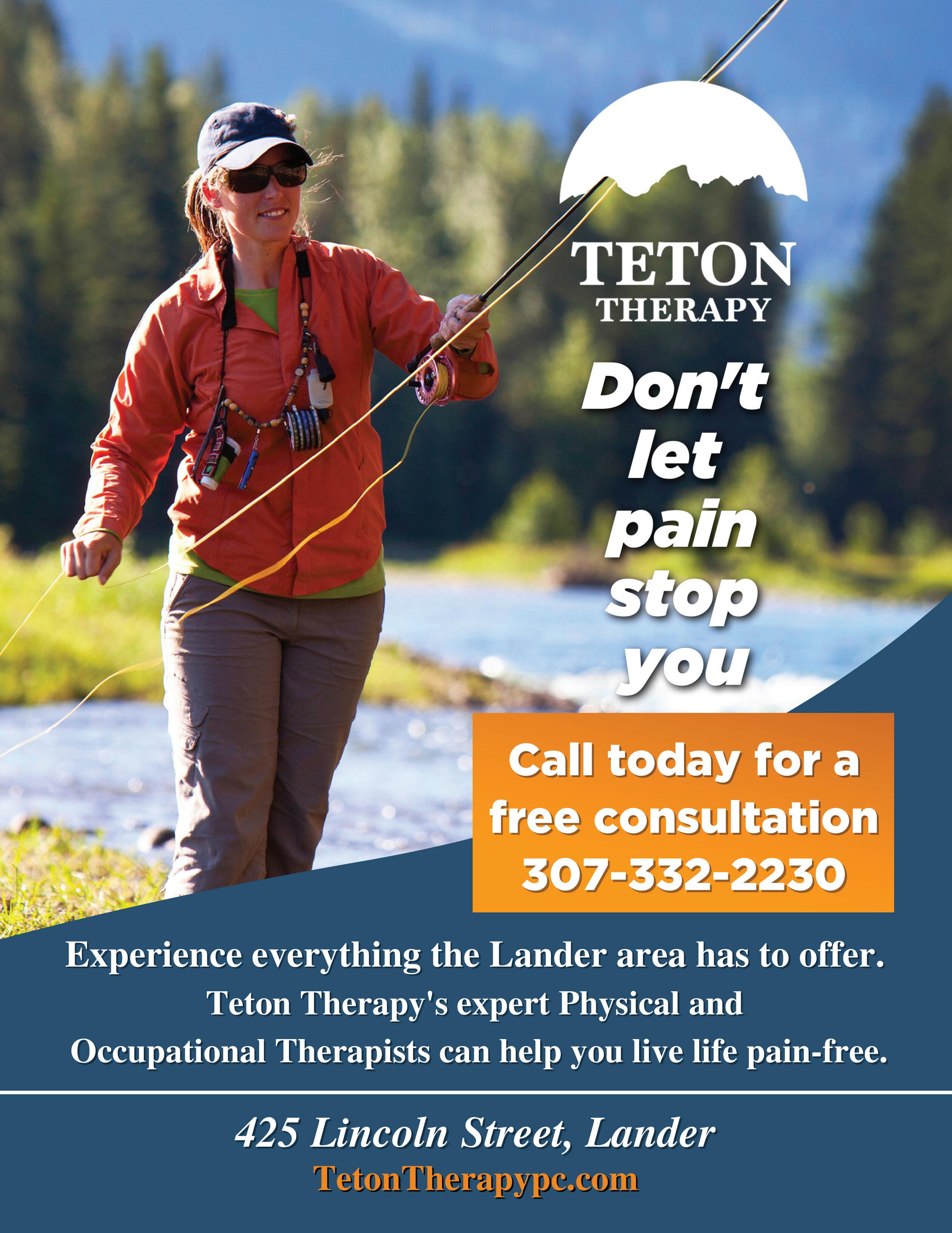 8 Better, together. Strong communities better us all. We give of our time and resources to help make this a place we can all be proud to call home. See how we’re involved at blackhillsenergy.com/serving. ©131422_21 Wahl Electric, LLC Scott Wahl Owner/Master Electrician (307) 349-9505 Residential & Commercial Electrical Contractor Fully Licensed & Insured wahlelectric@gmail.com 933 Main Street, Suite 3 Lander, WY 82520 (307) 332-3434 www.denturesndental.com Same-day Denture Services Dental Implants General Dentistry including Endodontics • Root canals • Fillings • Crowns/Bridges Cosmetic work • Oral surgery • Tooth Extractions Cosmetic work • Oral surgery Tooth Extractions • Fillings X-Rays Championing conservation in Lander ...and beyond. Sigh up to find out more. Image: © Scott Copeland Images 307.332.7031 | wyomingoutdoorcouncil.org