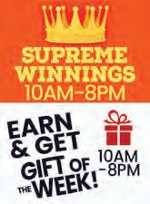 Earn 200, 400, and 600 same-day points by playing slots using your Rewards Card. Once you earn your points, visit a kiosk, and choose the “Supreme Winnings Sundays” promotion button. The Free Slot Play won will be automatically added to your Rewards Card. Earn up to $150 Free Slot Play per promotional week. Limit of three redemptions per promotional day/per patron.
