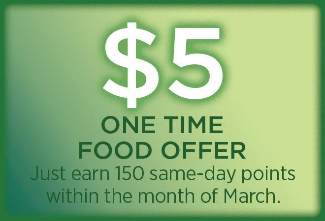 Any day in March receive a one-time $5 Food Offer for Wind River Casino or Little Wind Casino. Just earn 150 points by playing slot machines using your Rewards Card. Once you earn your points go to a kiosk and choose the “One Time $5 Food Offer” promotion button.One prize per patron.