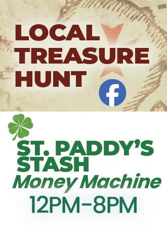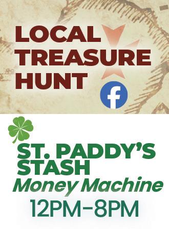 MARCH 4, 11, 18, 25 • 11:00 am (Check Facebook for clues.) Every Wednesday, we’ll hide ten Treasure Bags throughout the community. 10 gift bags hidden each week, 40 total gifts bags for the month. Prizes include: Free Slot Play, a Food Offer, and a mystery logoed item!