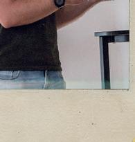 Hij scrolt door zij mobiel.