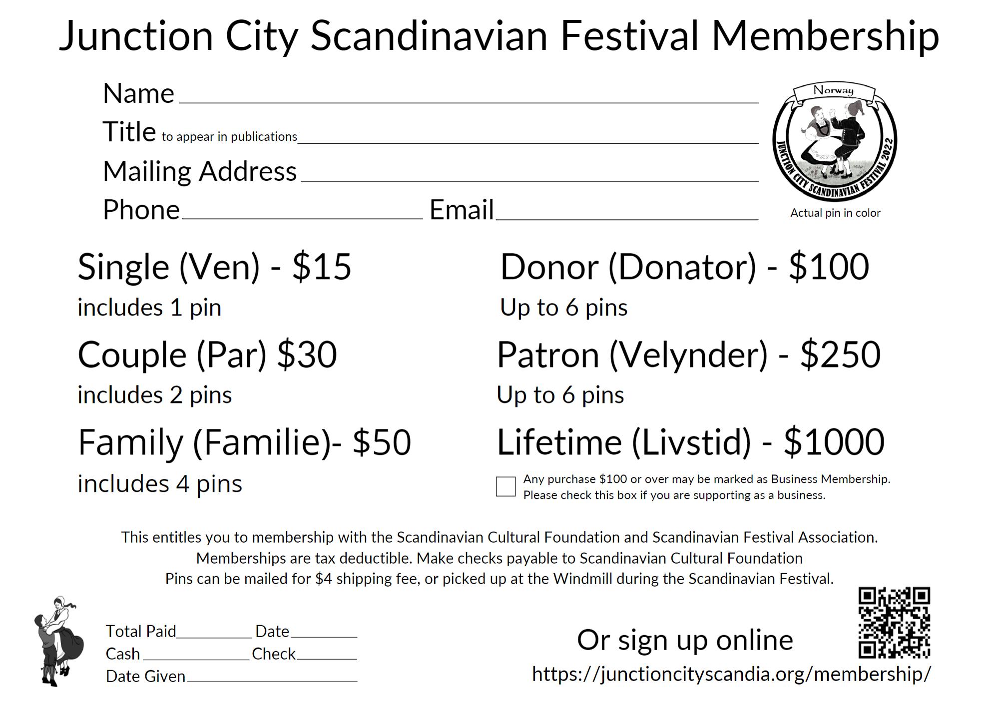 When shopping for a Membership, know that your support makes a difference. There are multiple levels of membership, but every purchase is greatly appreciated. Thank you for your contribution. Junction City Scandinavian Festival members are special people that are held in high regard in our community.