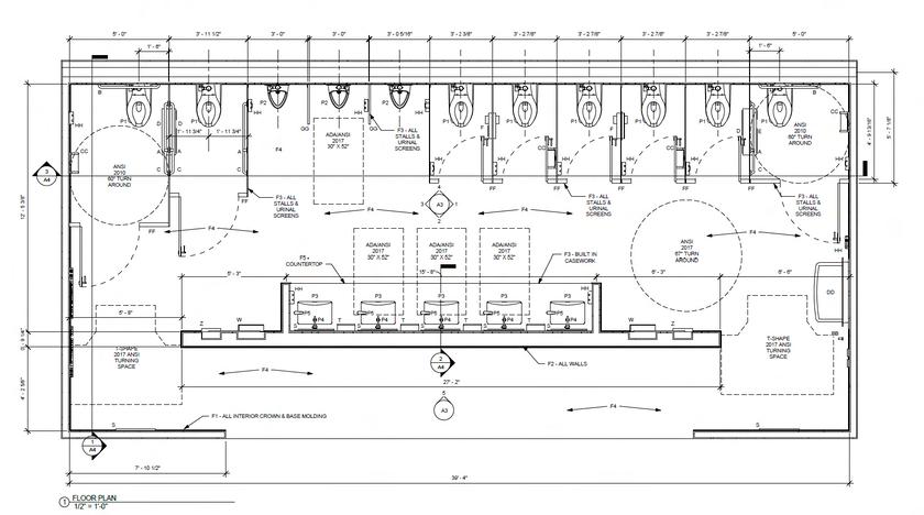 For this project, I was tasked with designing a commercial men's restroom in accordance with all regulations set in place by the American's with Disabilities Act (ADA). Using Revit and Enscape, I developedadetailedfloorplan,reflectedceilingplan, interiorelevations,andrenderings.