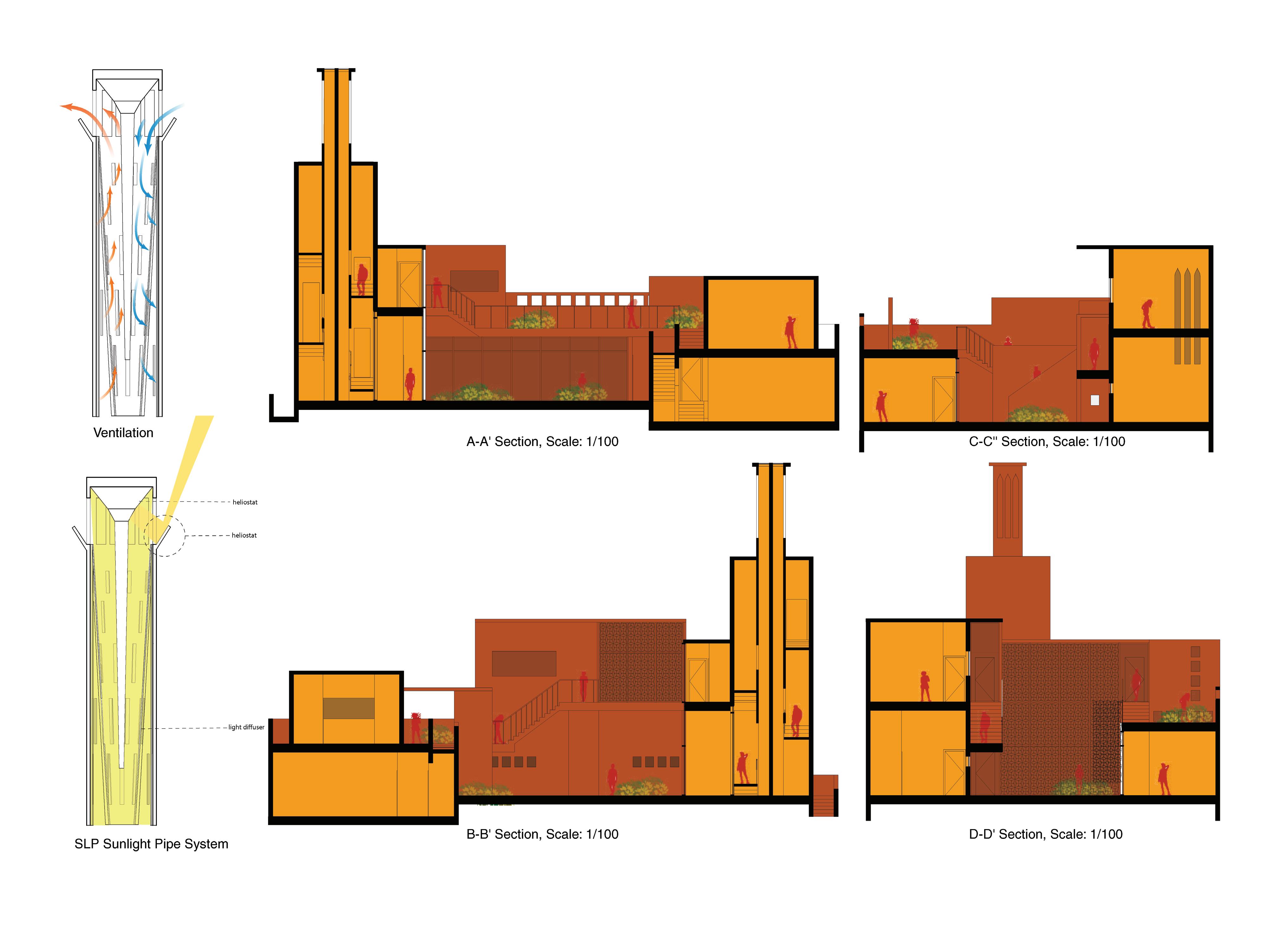 Whilst integrating innovative sustainable building technologies. The programming and layout pays a tribute privacy, a crucial need in Islamic culture. This building seeks to accommodate the traditional habits of Islamic and guests would have a calming, spiritual space. In addition, this building also includes traditional passive Inspiration is drawn from the traditional wind catcher (barajeel) for passive thermal control. This building is building. As Emirati's is known to have the tradition of expanding their home as their family grows.