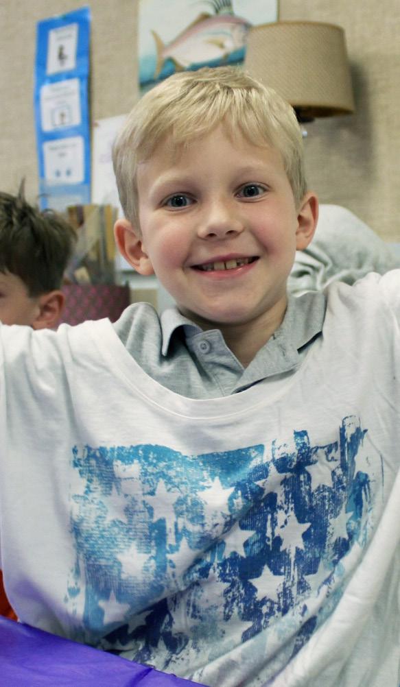 “He’s very imaginative, so music, PE, and theater have been huge for him. Those outlets help him focus and stay engaged. Mrs. Stewart saw that he liked informational books, so that’s what she gave him during his reading time,” Whitney said. “He’s learning the same things as everyone else, but in a way that works for him.”