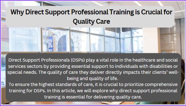 Direct Support Professionals (DSPs) play a vital role in the healthcare and social services sectors by providing essential support to individuals with disabilities or special needs. The quality of care they deliver directly impacts their clients’ well-being and quality of life. To ensure the highest standards of care, it is crucial to prioritize comprehensive training for DSPs. In this article, we will explore why direct support professional training is essential for delivering quality care.