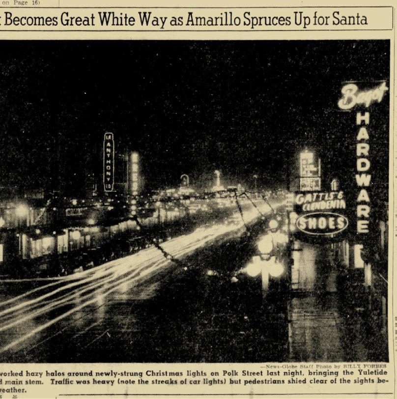 Amarillo once dressed its holiday cheer on the busy sidewalks of Polk Street. The great white way of the Panhandle, brash and gaudy with its nightly displays of neon the year round, would trip the light fantastic come December with holiday lighting displays designed on the premise that nothing succeeds like excess. It was here the Jaycees organized a big daytime Christmas parade to kick off the season with marching bands and elaborate floats, many with overt religious themes to convince folks that Jesus fully endorsed all the hoopla. And of course, Santa would ride into town on the heels of these parades, probably looking for last-minute deals at Fedway like everyone else.