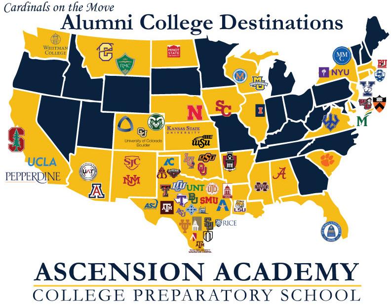 The Ascension Difference creates confident, independent learners who are successful in college and beyond, as they begin careers or advanced degrees. Ascension graduates are those college students who excel in their fields of study and are those their classmates depend on to get help in advanced math or to review an English paper. They take leadership roles on their campuses and in their communities. They take their knowledge, compassion, and leadership skills with them wherever they go because they learned and practiced what being a global citizen means as Cardinals at Ascension Academy.