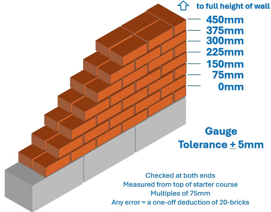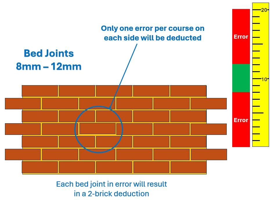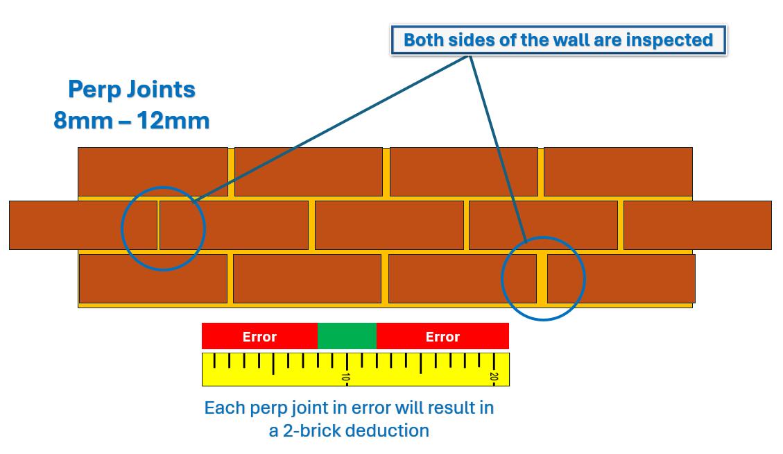 If there is a joint greater than 50mm long that protrudes by 3mm at any point, it will result in a one off brick deduction of 100 bricks