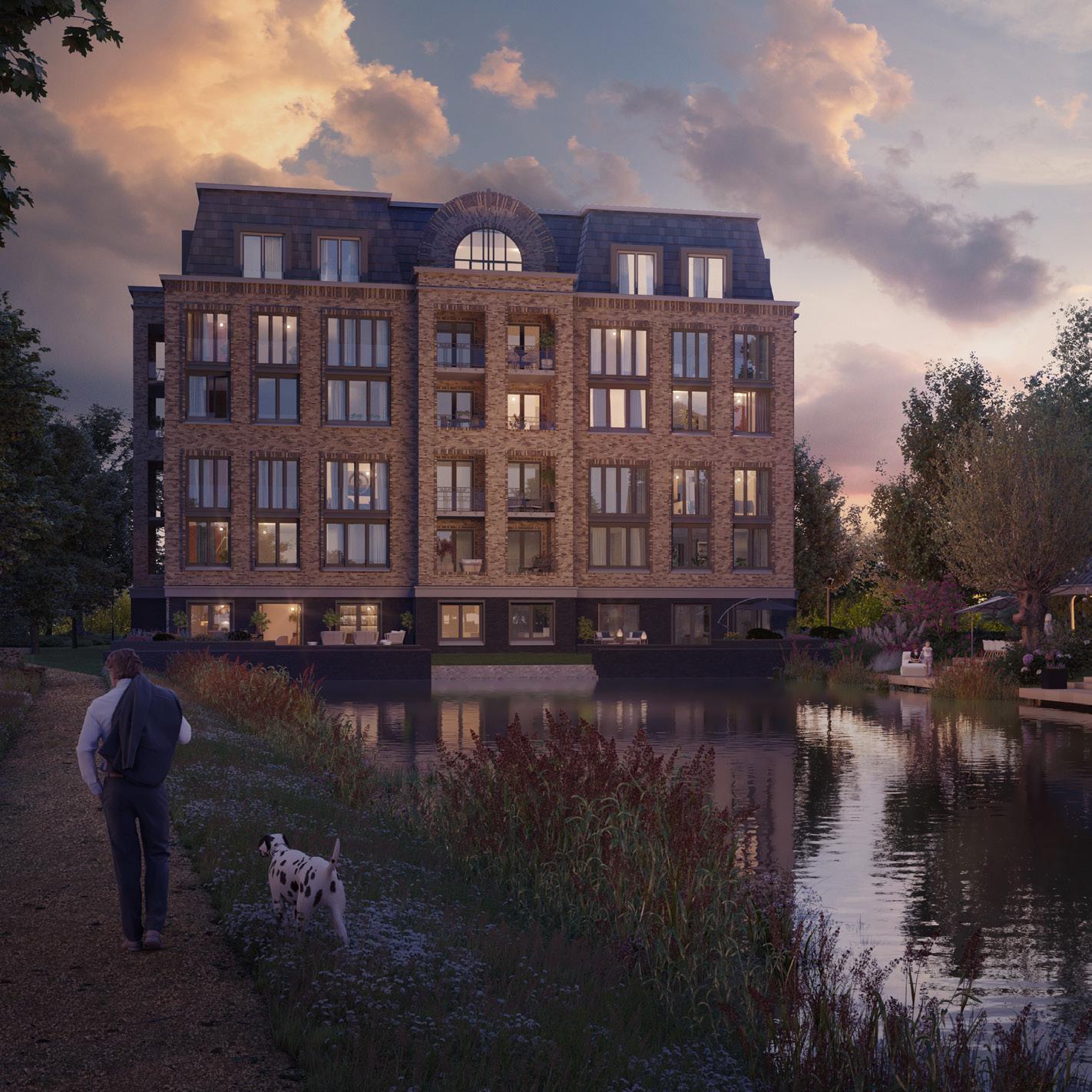Op de verdiepingen zijn steeds 3 ruime appartementen gelegen. Alle appartementen zijn voorzien van een ruime woonkamer met luxe keuken en ten minste een tweetal slaapkamers, waarbij in de master bedroom ruimte is gereserveerd voor een walk in closet. De appartementen in het midden van het gebouw gelegen, hebben de balkons aan de achterzijde van het landhuis, recht uitkijkend op de waterpartij. De andere twee (iets ruimere) appartementen op de verdieping, hebben vanuit de woonkamer middels hoge raampartijen uitzicht op de waterpartij en hebben het balkon aan de zijkant van het landhuis. Deze appartementen zijn, naast de badkamer die gekoppeld is aan de master bedroom, standaard voorzien van een badkamer voor gasten.