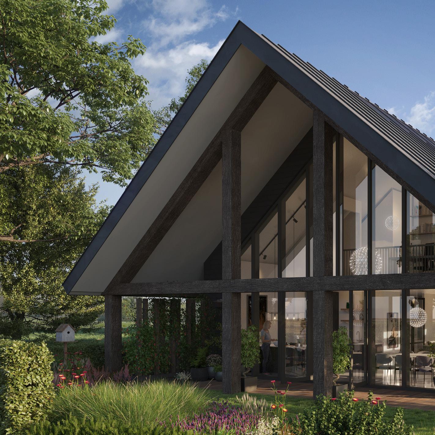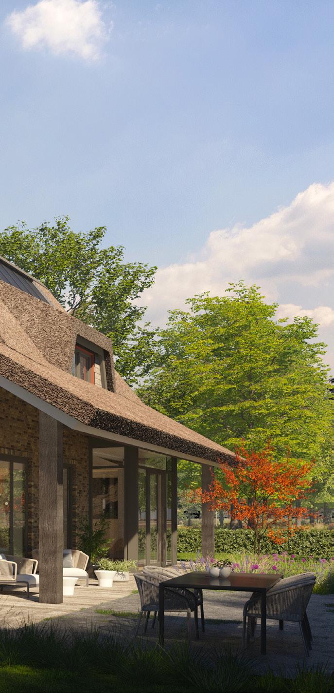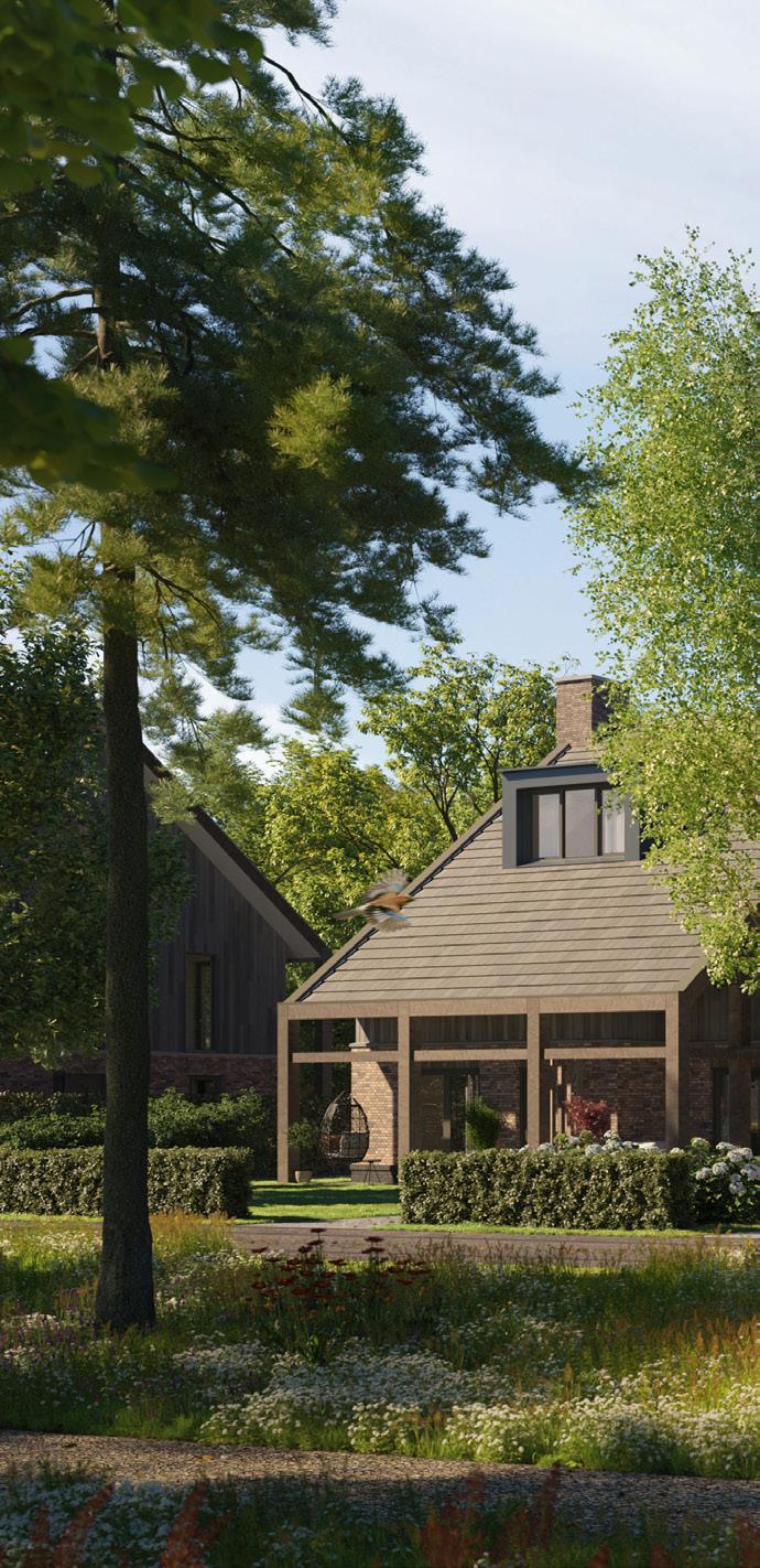 Aan de rechterkant van het landhuis stond een historische boerderij compleet met een authentiek boerenerf. Op deze plek worden als verwijzing naar de bebouwing van weleer, vier Boerderij terraswoningen gerealiseerd. Aan de andere kant van de waterpartij zijn de Bos Villa’s opgenomen in de omringende beplanting, waarbij het groen waarin ze liggen een natuurlijke coulisse vormen. De houten balken, het dakoverstek en de sfeervolle veranda’s van deze woningen benadrukken dit effect en dragen bij aan de betoverende sfeer. Langs de weg vormen de woningen een prachtig ensemble dat opgaat in het landschap, terwijl ook de vrijstaande Park Villa, aan de andere zijde aan het Julialaantje, met haar rieten kap goed in de omgeving past.