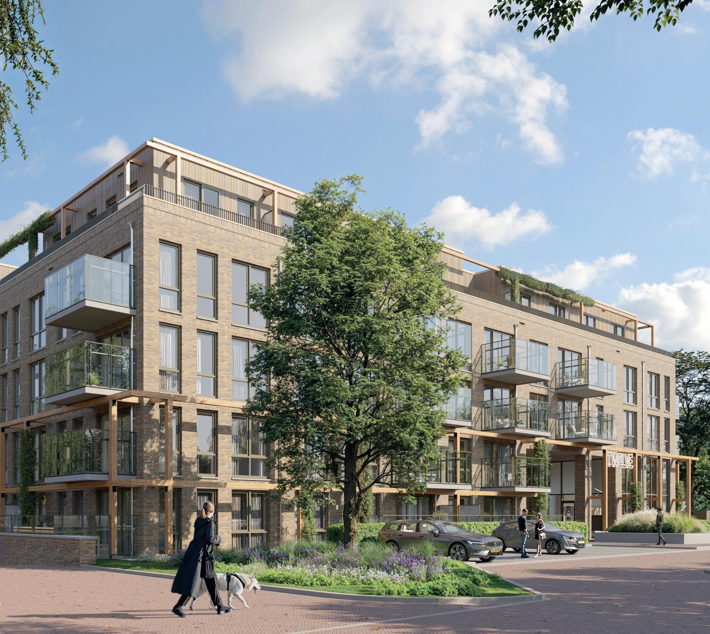 Dennis: “Wij vinden het daarnaast heel belangrijk dat ieder appartement voldoende buitenruimte heeft. Zo hebben de bewoners op de begane grond een groot terras met houten pergola midden in het groen en genieten de bewoners op de verdiepingen van het uitzicht vanaf hun balkon. De penthouses op de bovenste verdieping hebben zelfs een dakterras door de terugliggende gevel die we hebben aangebracht.”