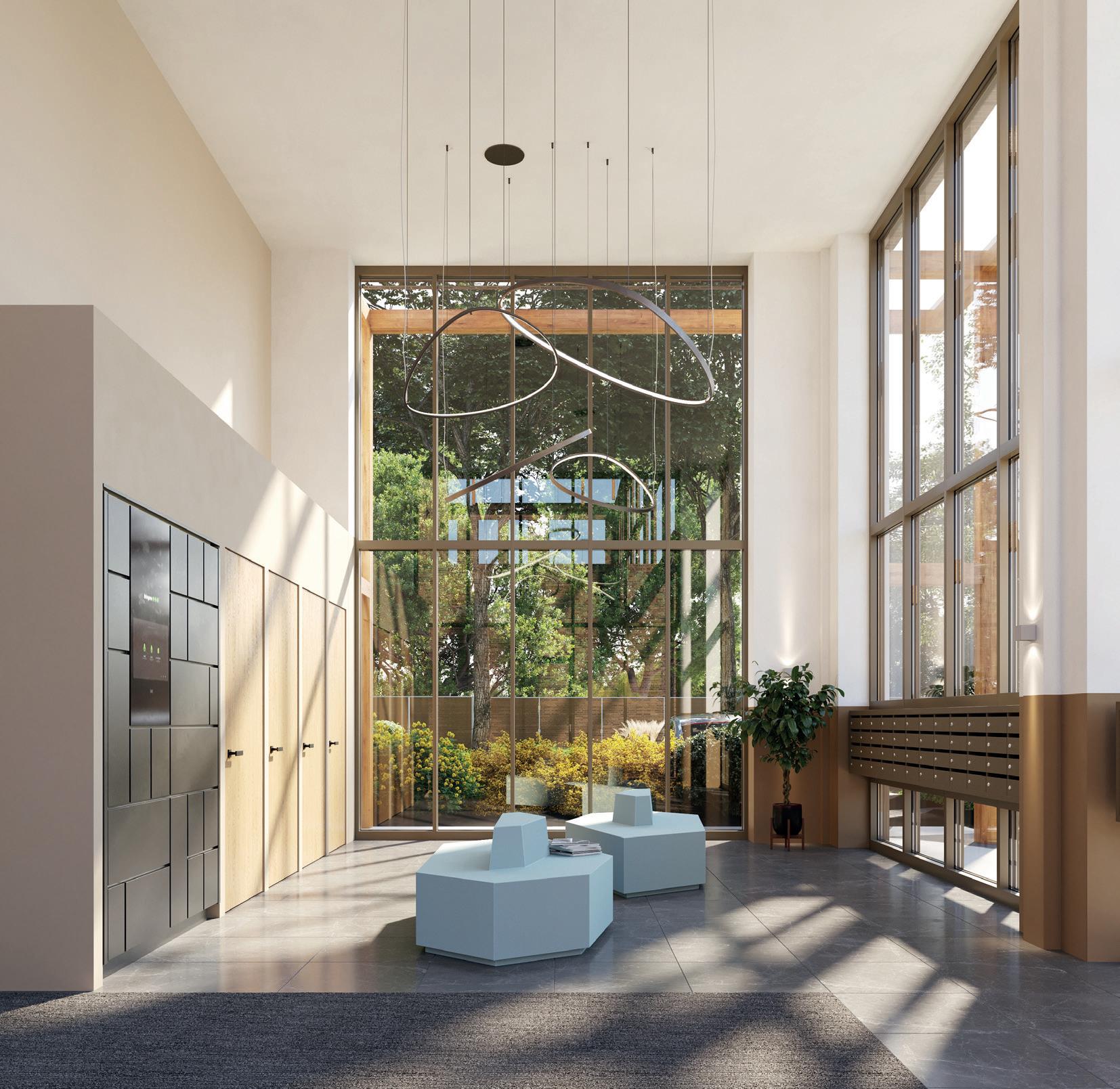 Hier kom je binnen na een lange dag en adem je eens rustig in en uit. Je kijkt door het plan heen naar de tuin, bekijkt de open rondgang van de galerij die naar jouw appartement leidt en je weet, hier ben ik thuis. Ligt er nog een pakketje voor je klaar? Dan loop je op weg naar je appartement even langs de ‘Bringme’ boxen. Boxen waarmee je al jouw pakketjes eenvoudig ontvangt, verstuurt en retourneert. Zo ervaar je het comfortabele wonen in Twelve direct bij binnenkomst.