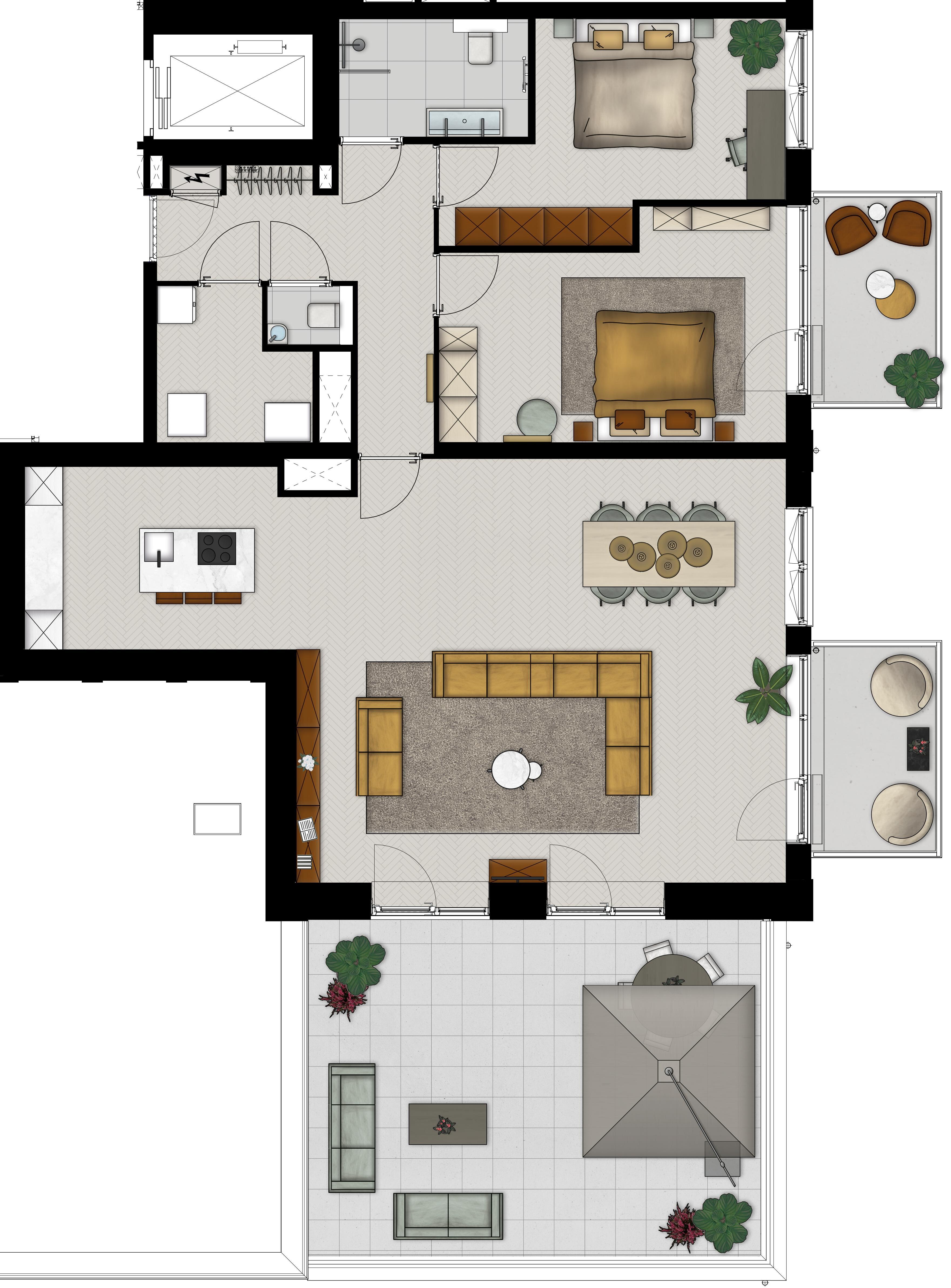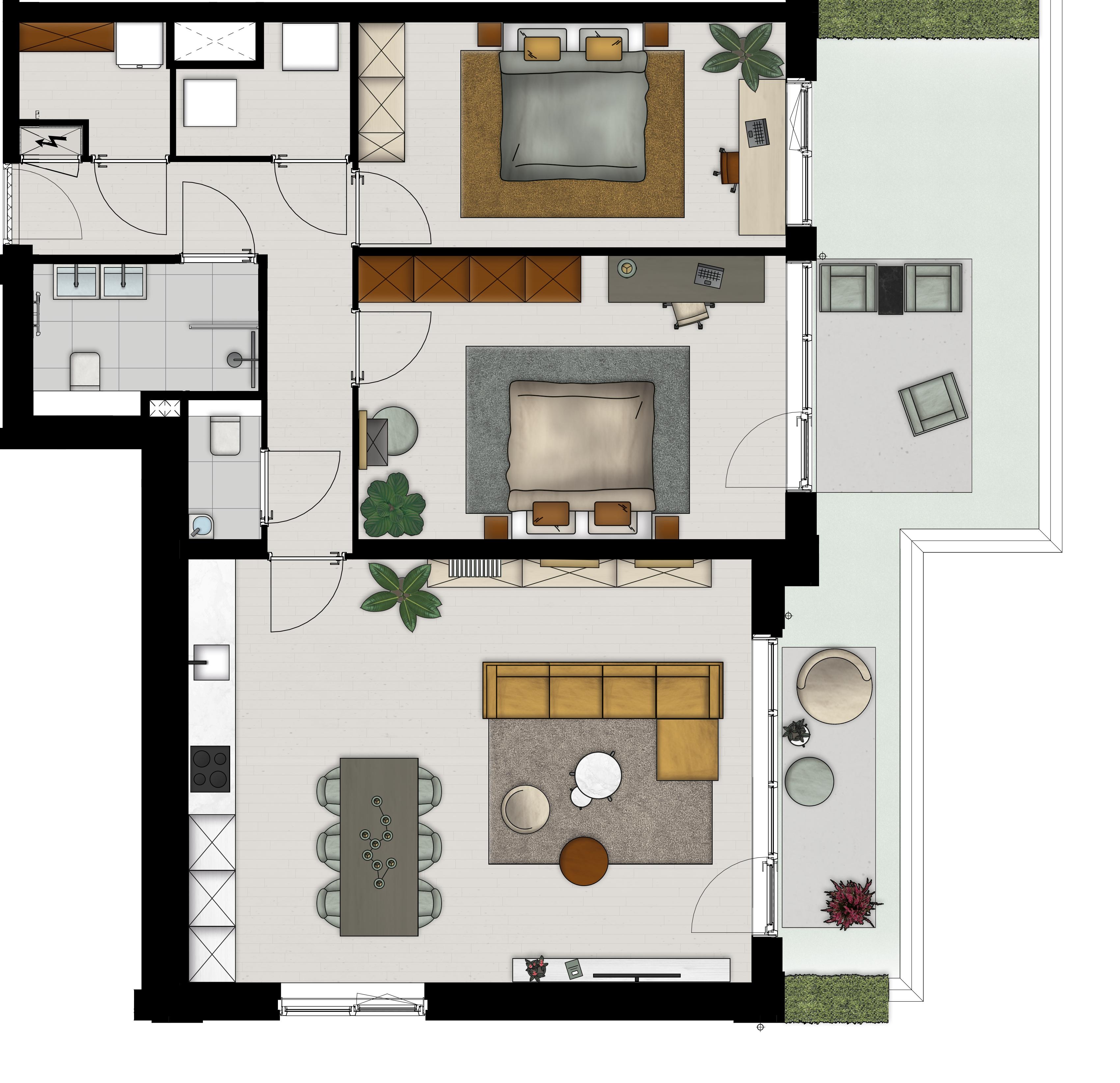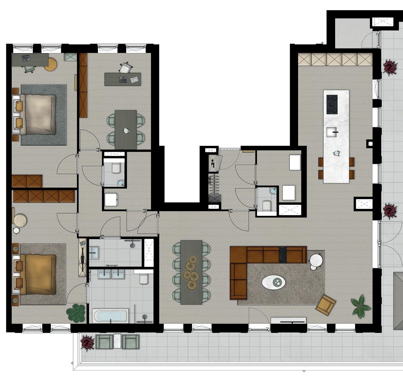 Kookt u straks in deze prachtige living met open keuken op uw eigen kookeiland? In dit driekamerappartement geniet u binnen en buiten van de ruimte. Met een heerlijk dakterras aan de living voor buitendiners, een werkkamer met aansluitend terras voor extra inspiratie en een fijne slaapkamer met uitzicht op de Buitenplaats.