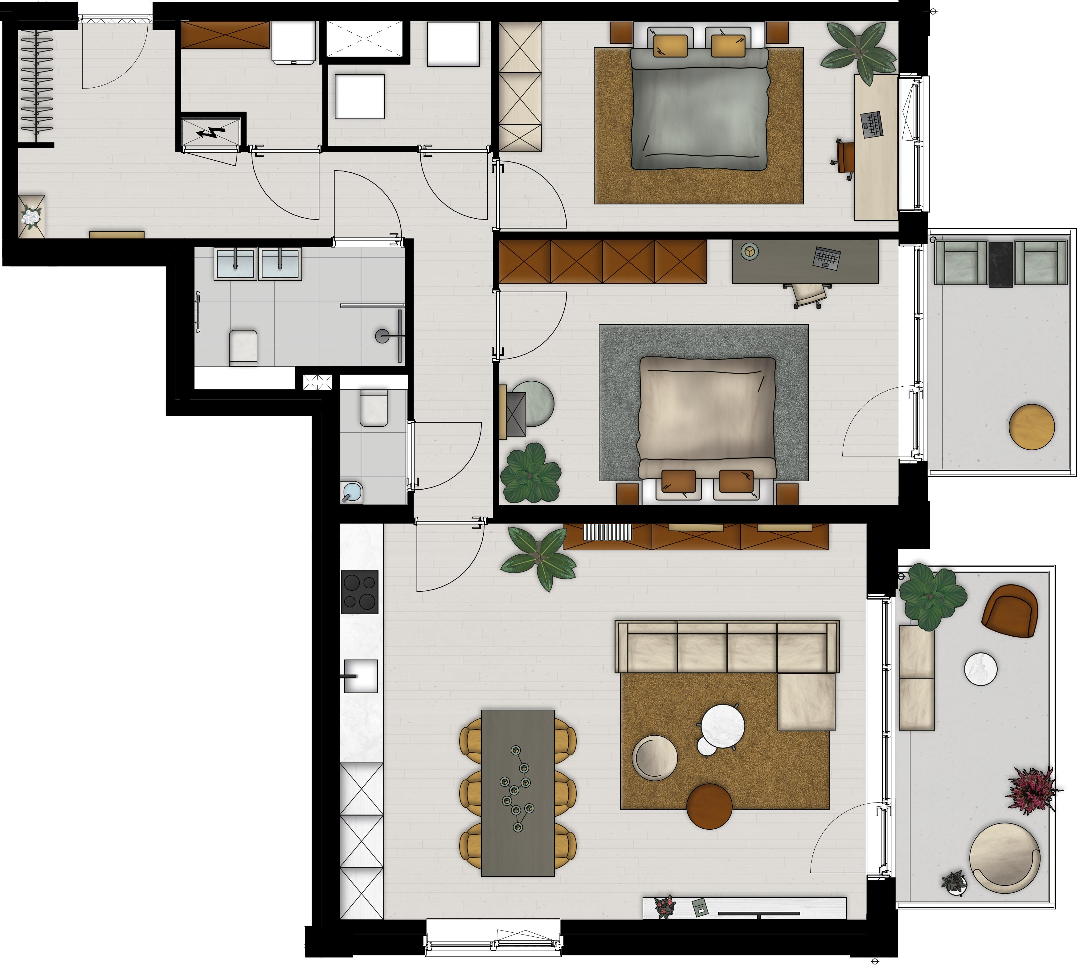 Met twee slaapkamers en een werkkamer met uitzicht op de Kloostertuin heeft u in deze appartementen alle ruimte om uw woonwensen waar te maken. De ruime living met open keuken biedt toegang tot uw eigen balkon om heerlijk buiten te kunnen zitten en iedere ochtend de zon op te zien komen boven de Weide.
