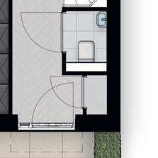 Het sanitair wordt in Waterjuffers compleet met tegelwerk opgeleverd. Je kunt kiezen uit twee verschillende kleuren voor het tegelwerk, dat wordt gecombineerd met een stijlvol wit wandcloset van Villeroy & Boch, een bijpassende fontein en een verchroomde kraan van Grohe.