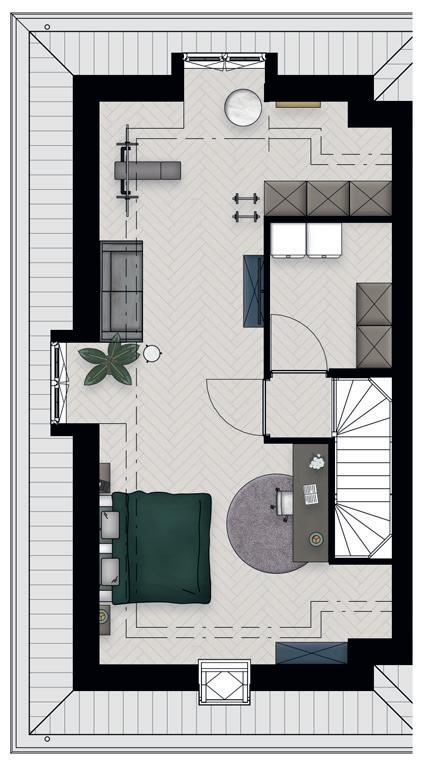 Op de tweede verdieping tref je een zolder, waar met circa 28 m² tot circa 37 m² voldoende ruimte is om een kantoor aan huis of een eigen fitnessruimte te realiseren.