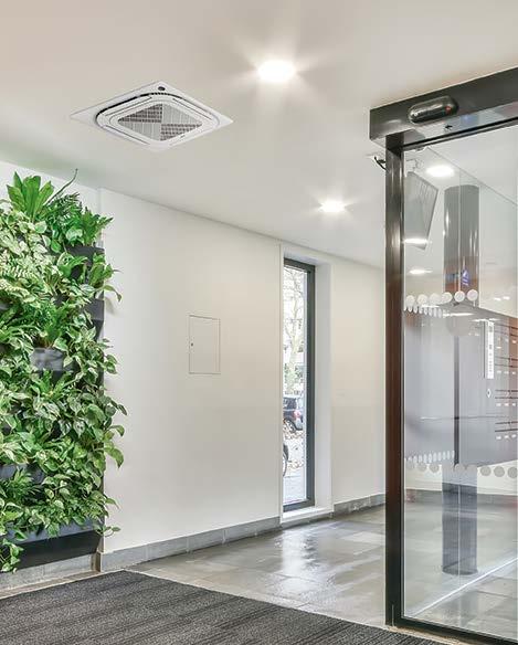 Aire acondicionado de instalación en falso techo, recomendado para grandes espacios como oficinas o locales comerciales. Una solución estética y muy funcional para aclimatar el espacio durante todo el año.
