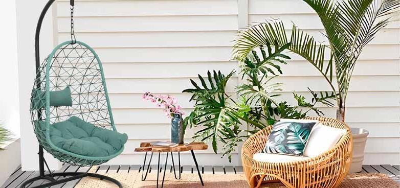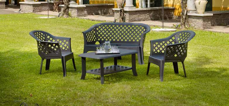 Ratán sintético acabado verde. Soporte de acero. Cojín acabado verde (200gr./m2).