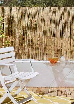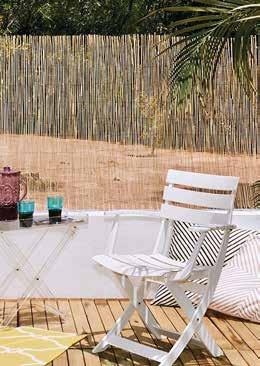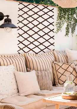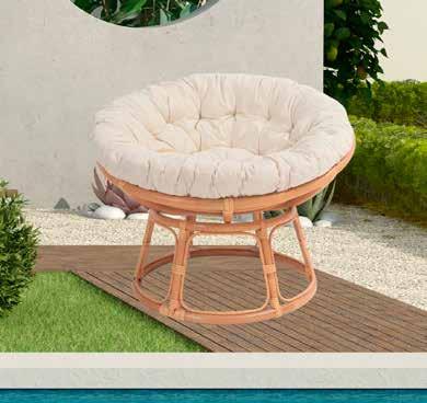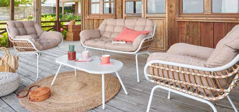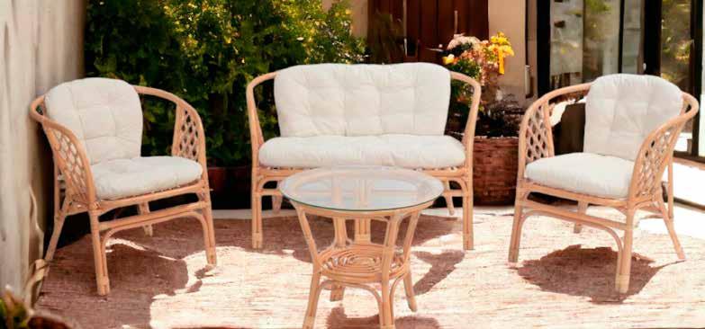 Estructura de ratán natural. Cojines poliéster acabado crudo (180g/m²).