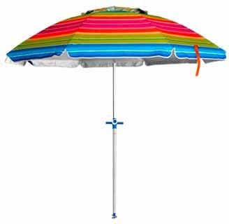 SOMBRILLA PLAYA ALUMINIO 2M Sistema de fijación pincho incorporado y punta de aluminio. Tela de poliéster. Varilla de fibra de vidrio. Reclinable.