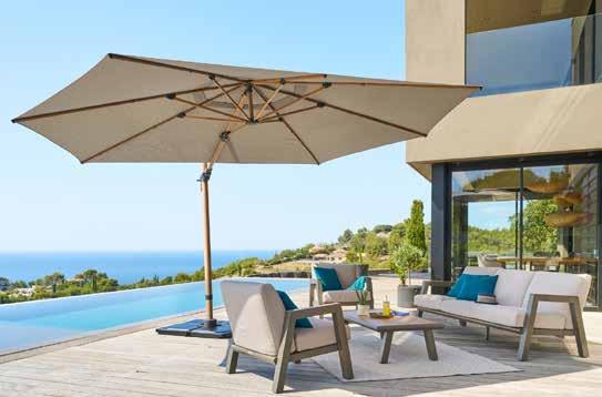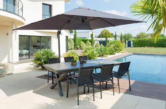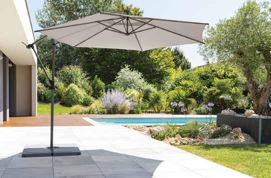 PARASOL LATERAL MANOA 3 M. 6 varillas de aluminio. Poliéster (200 gr/m²). Rotación 360º. Con ventilación. Acabado gris pizarra, taupé o arcilla.