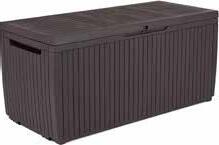 Ratán sintético acabado taupé degradado. Cojines poliéster acabado gris (220g/m²).