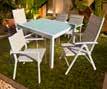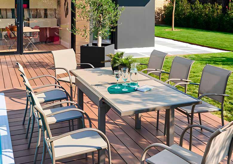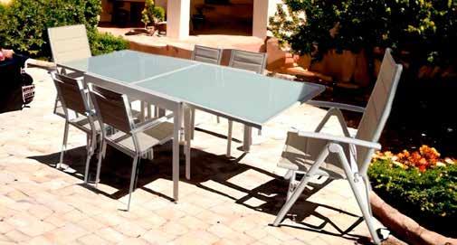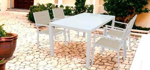 SERIE BRASILIA Estructura de aluminio acabado blanco. Textilene acabado arcilla.