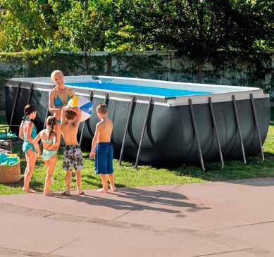 Incluye depuradora con filtro de arena, escalera de seguridad 2x3 peldaños y tapiz de suelo. Med.: 610x375x120 cm. BAJO PEDIDO