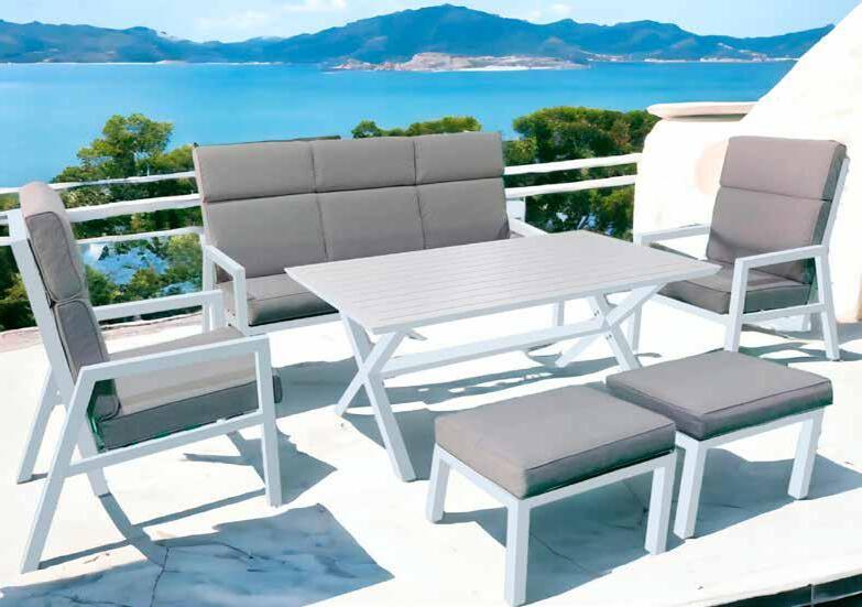 Set martinica Estructura de aluminio acabado blanco. Cojines poliéster acabado gris (180g/m²).