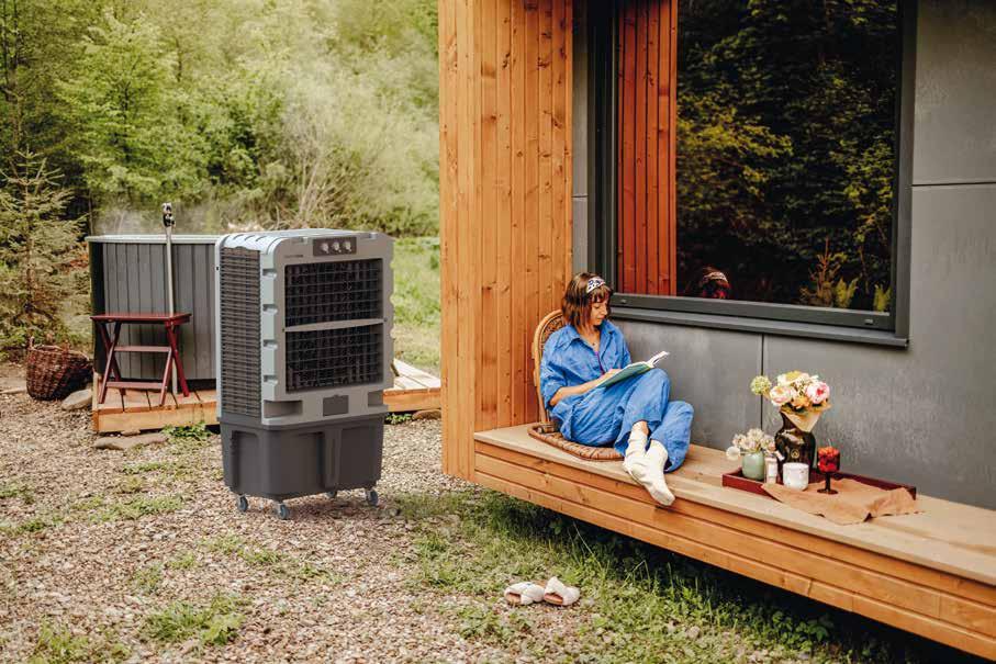 300W. 5 funciones. 3 velocidades. Oscilante. Depósito 90 l. Modo refrigeración. Modo evaporación. Para superficies de 80 m2