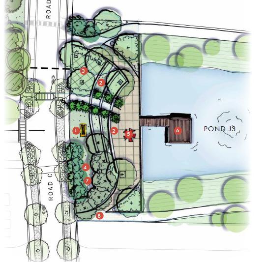 NEXTON’S DOWNTOWN RETAIL MAIN ST EXPERIENCE EXIT 197 SIGMA DR DOWNTOWN NEXTON TRAILS DOWNTOWN NEXTON MAIN STREET; BLDG 1 DOWNTOWN NEXTON MAIN STREET; BLDG 1 POND J3 - CONCEPT DOWNTOWN NEXTON 2021.09.09 POND J3 1 2 2 3 7 4 5 6 8 LEGEND: SECTION B SCALE: 1”=20’ AMPHITHEATER SEATING GATEWAY FOCAL FEATURE OBSERVATION DOCK & GAZEBO LANDFORMS & BERMS ACCESS TO PARCEL 8 BREAKOUT SPACE PERFORMANCE PLAZA LOUNGE ZONE 1 2 3 4 7 5 6 8 RETAINING WALL TOP OF WALL TO TOP OF WATER = 5’ POND W/ FOUNTAIN DOCK & GAZEBO 40’ 40’ 20’ 20’ SIDEWALK VERGE & ROAD PERFORMANCE PLAZA FEATURE 1’ THEATER LANDINGS DOWNTOWN NEXTON POND & PAVILION