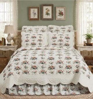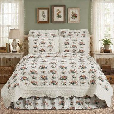 Delicately quilted with romantic florals and a scalloped edge, this quilt captures grandmillennial charm with heirloom texture and soft, collected elegance.