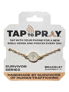 Tap To Pray drew steady tra c throughout the show as retailers responded to the bestselling Survivor Series bracelets. Featuring rugged tactical styles and adjustable chain bracelets, each NFC-enabled piece is handmade by survivors of human tra cking in the Dominican Republic and delivers a daily Bible verse and prayer with a simple tap.