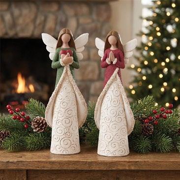 Embrace the serene beauty of the season with our exquisite 8" angels. Adorned with delicate swirl details and cozy trim, these peaceful figures bring a touch of heavenly grace to any space in your home!