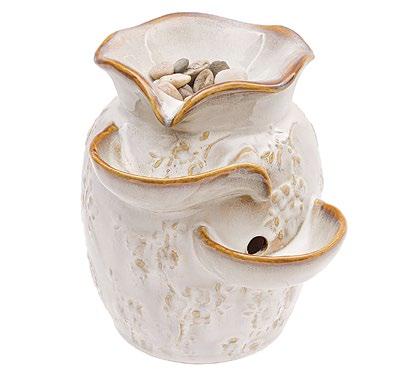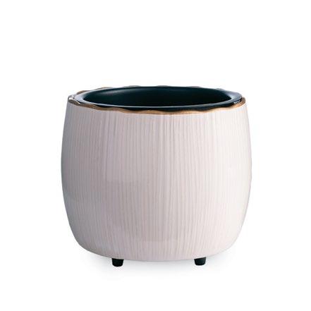 Featuring ivory stoneware and a gold ridged rim, this crock gently melts candles from the sides and bottom to evenly release fragrance.