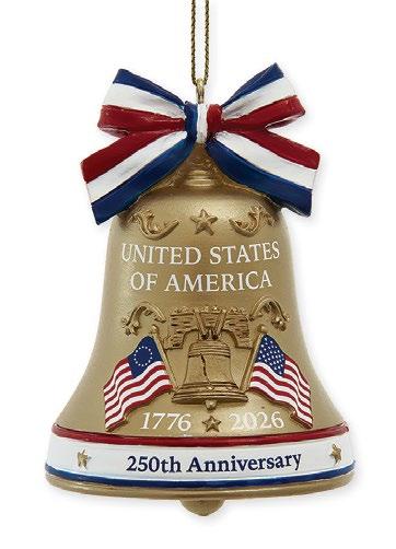 AMERICA’S 250TH ANNIVERSARY LIBERTY BELL ORNAMENT WITH RED, WHITE & BLUE BOW
