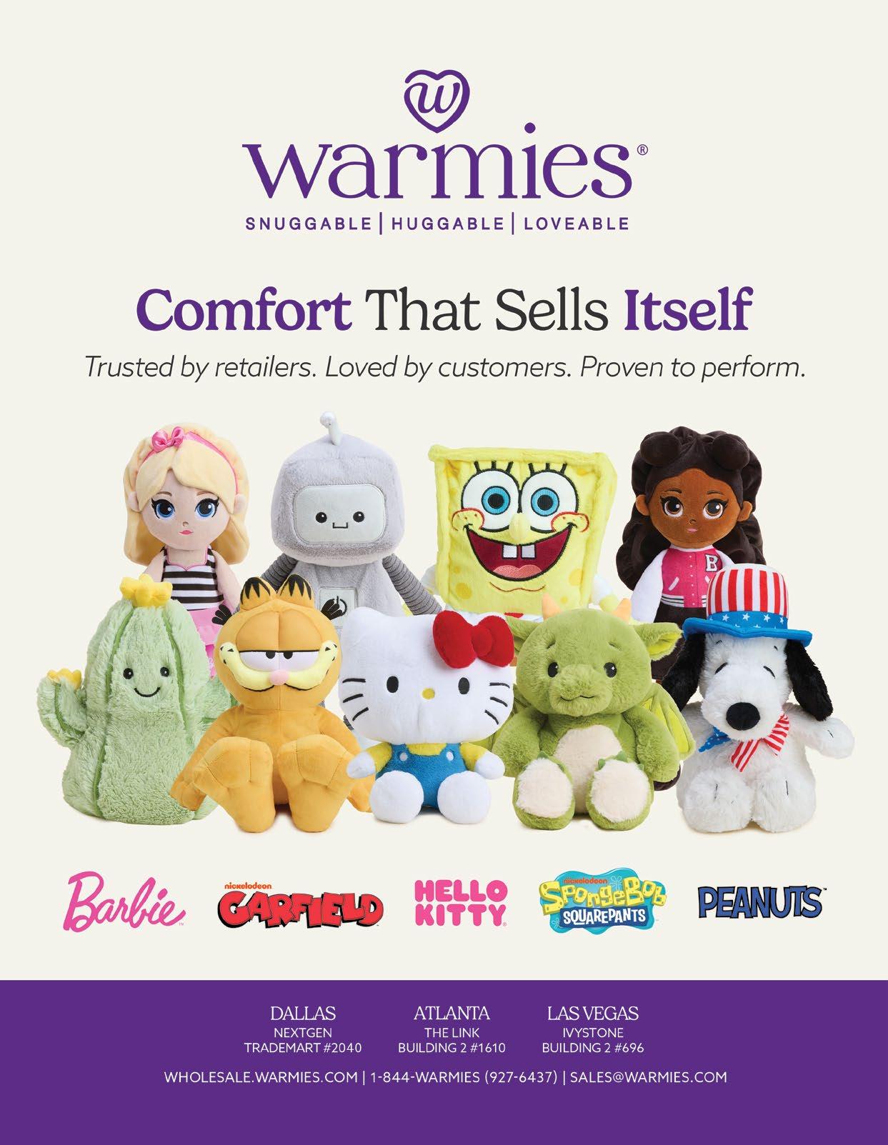 Warmies once again set the pace with new product introductions this season, highlighted by the debut of licensed collections featuring Barbie, Garfield, and Hello Kitty. Consistently driving strong retail results, the brand also saw a positive response to new baby and infant o erings, including lovey blankets, swaddle blankets, and footed sleepers.