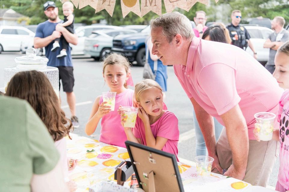 MayorMatthewMoenchjoinedtheBridgewaterPoliceDepartment atEmmy’sLemonadeStand,alocaleffortraisingfundsforAlex’s LemonadeStandFoundationforChildhoodCancer.