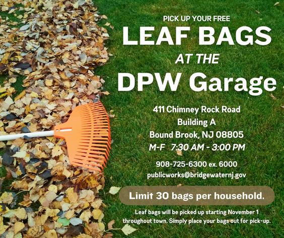 Fallleafbagsareavailableforpick-upatboththeDepartmentofPublicWorksat 411ChimneyRockRoadorattheMunicipalBuilding It’salwaysanexcitingtime whenthecolorsbegintochangeandtheairfeelsalittlecrisperinthemornings
