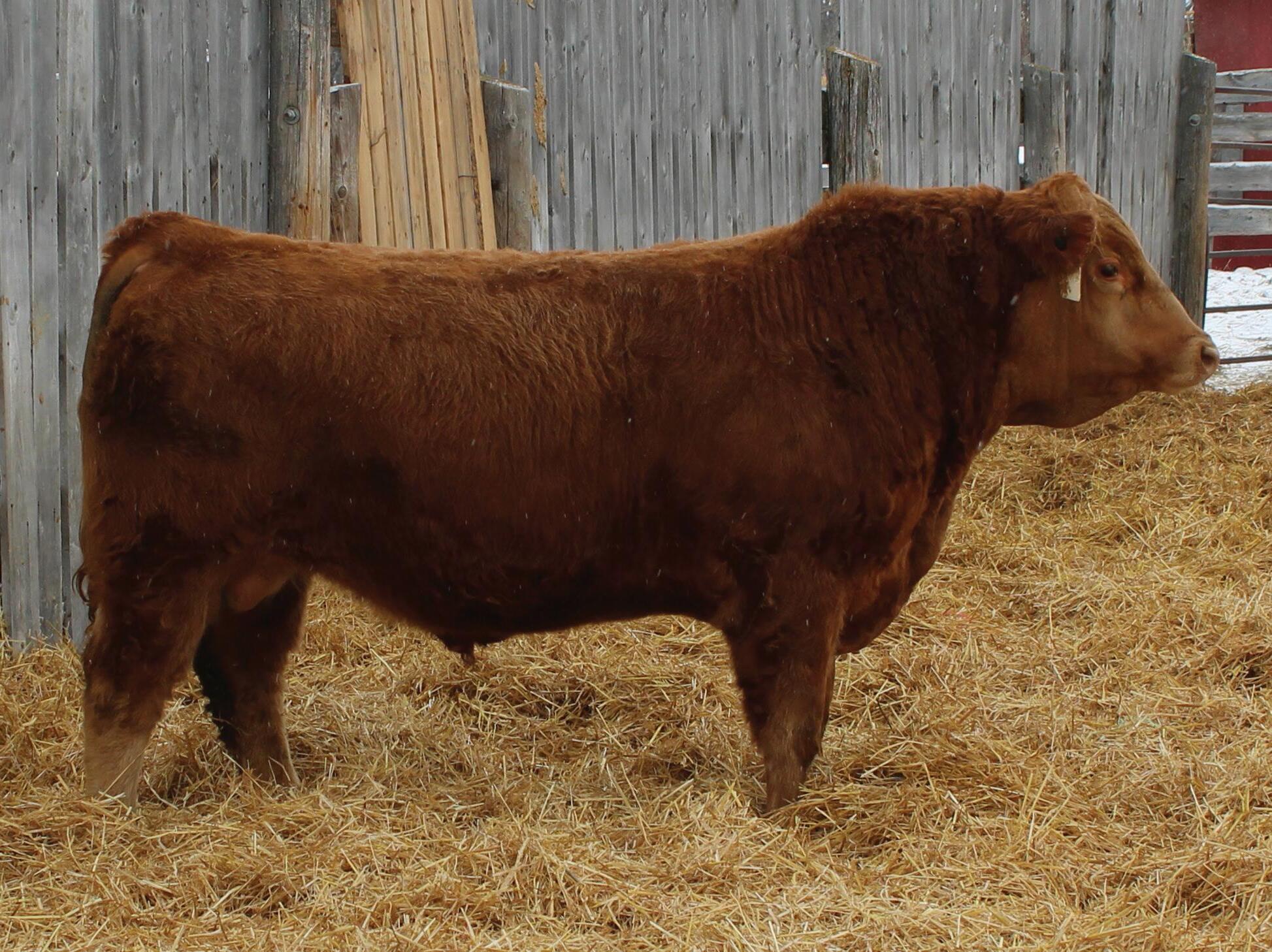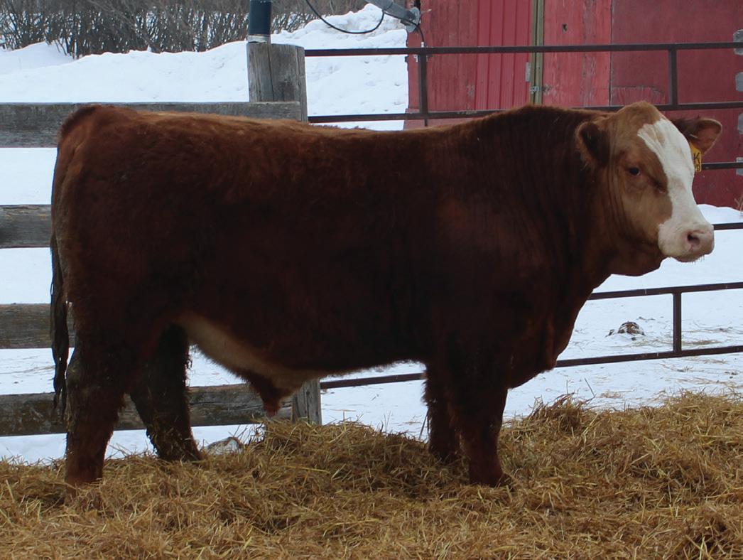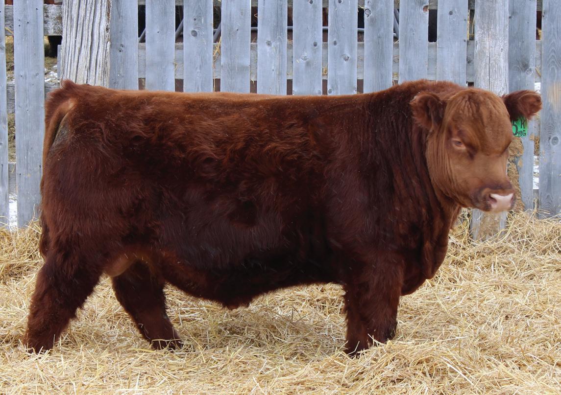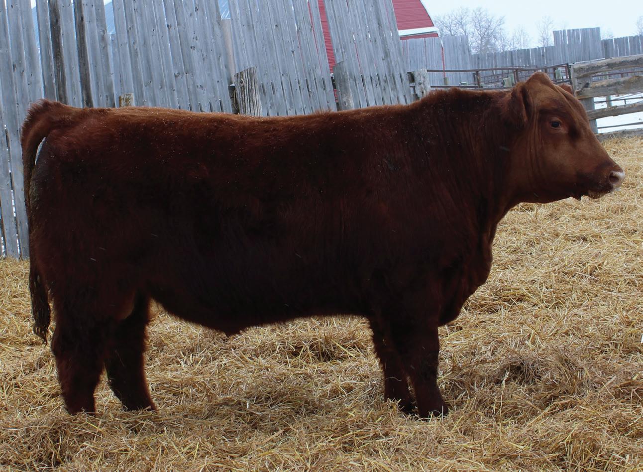 Hopefully, you’ll receive this book well in advance of March 25th. When you do, please consider this your invitation to tour our entire program. For now, you’ll find us (& the herd) four miles East of Kelso, SK. Our Sale facility, and our (near) future home is located a few miles away. The bulls will settle in at that site a few days ahead of the Sale, and we’ll start settling there, too, later this spring. Directions can be found in the catalogue. Our offering this year includes Red Angus, Simmental, and Percentage bulls. The first group in the catalogue are the ‘Secretariat’ progeny. These brand new genetics are exceeding our expectations. The Simmental division includes progeny of our proven Hot Iron sire, as well as a few souvenirs that came in dam with the purchase of bred females. The bulls are all managed the same and we’d be happy to answer any of your questions about their development.