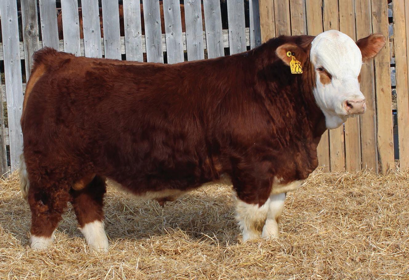 Percentage. Lot 34 results from pairing our first calving Simmental females with Red Angus calving ease sires. Lot 34’s dam is a maternal sister to Lot 22.