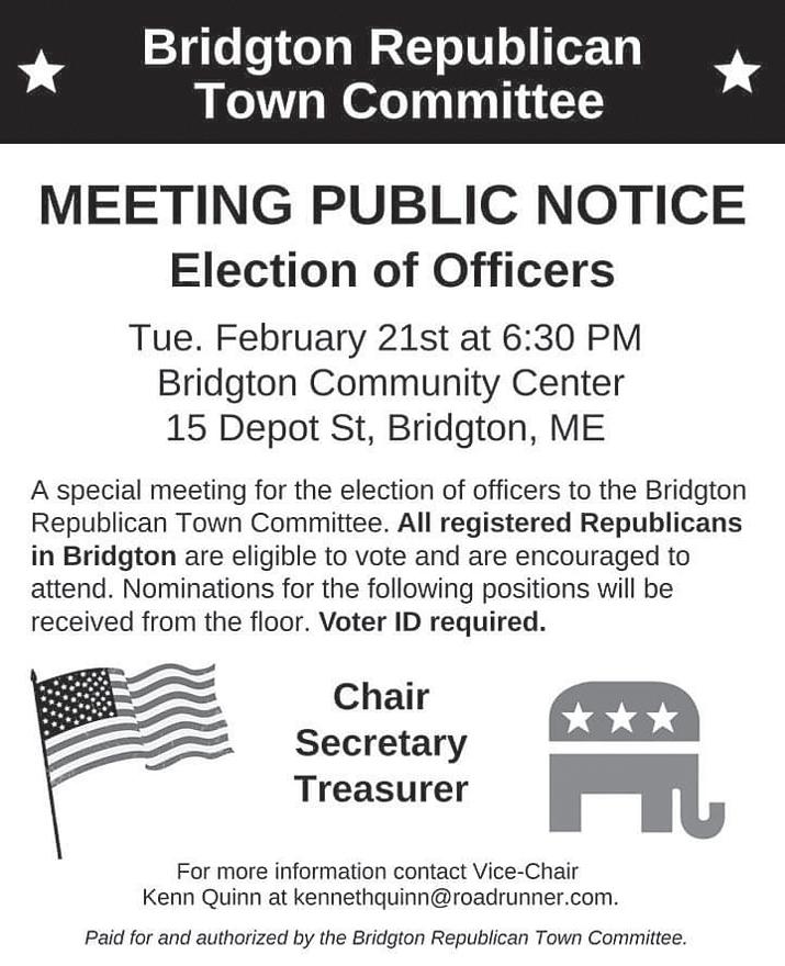 Saturday, February 18 Winter Carnival 2023 , sponsored by the Greater Bridgton Chamber of Commerce, Highland Lake Beach in Bridgton. Events include: 8 a.m. register kids for Ice Fishing Derby at Unc’L Lunkers Bait and Tackle Shop, 8 Gage Street; 10 a.m. registration for Rail Jam ($15 entry fee); 11 a.m. to 3:30 p.m. horsedrawn wagon rides (button required, $5); 11 a.m. juggling by Richard Hagerstrom (button required); 12 p.m. sign up for Freezing for a Reason; 12 to 6 p.m., Ice Bar on Highland Lake (button required); 1 p.m. Freezing for a Reason Polar Dip to benefit Harvest Hills Animal Shelter; 1:30 p.m. Rail Jam; 1:30 p.m. Spicy Chili Eating Contest; 6 p.m. fireworks on the lake (for safety reasons, no one will be allowed on the lake). All day, music, food and town ice rink open. Bridgton Rec is holding a craft and vendor fair from 8 a.m. to 3 p.m. at the Bridgton Town Hall Gym.